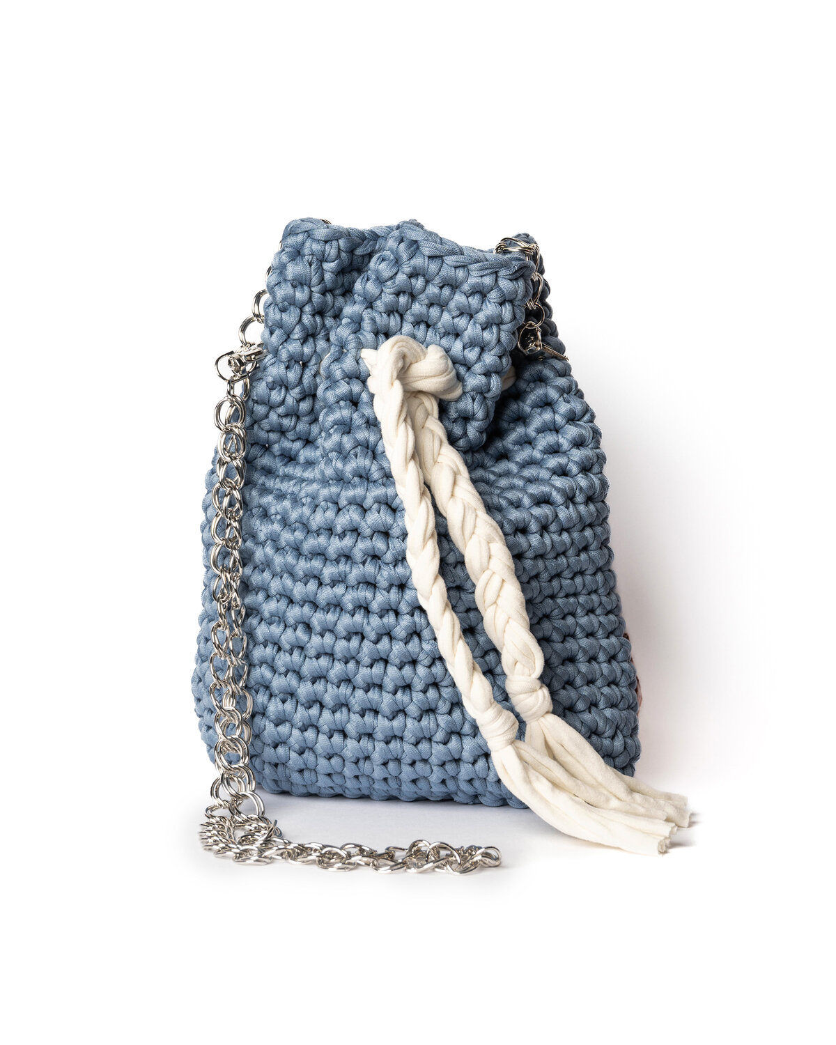 Sacchetto con tracolla a catena remobile realizzata con il metodo crochet.