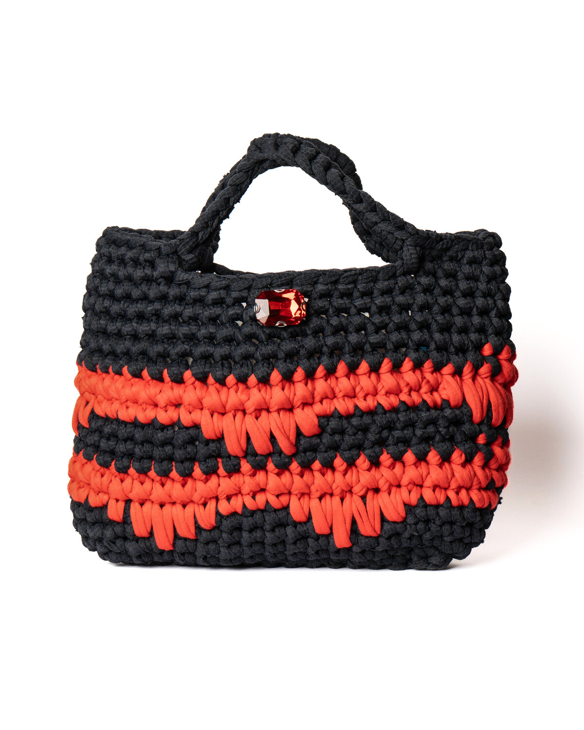 Fettuccia elastica in cotone bicolor bianco e rosso, strass cucito a mano
