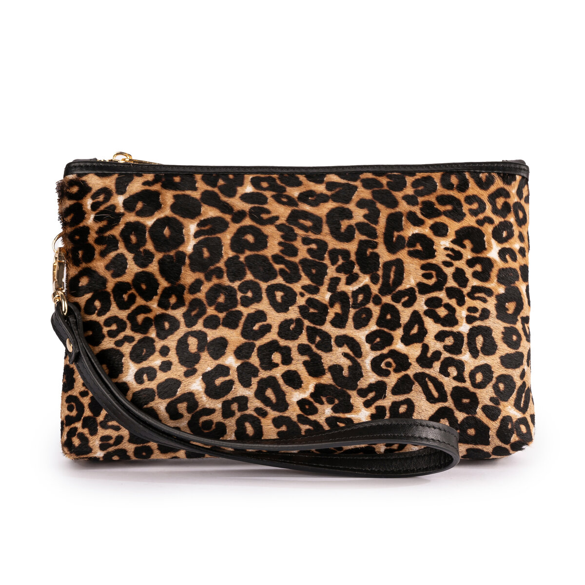 cavallino maculato, manicotto pelle vitello nera, fodera moirè nera