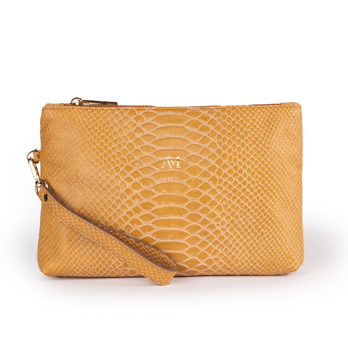 Pelle stampa pitone senape, manicotto , interno moirè nero