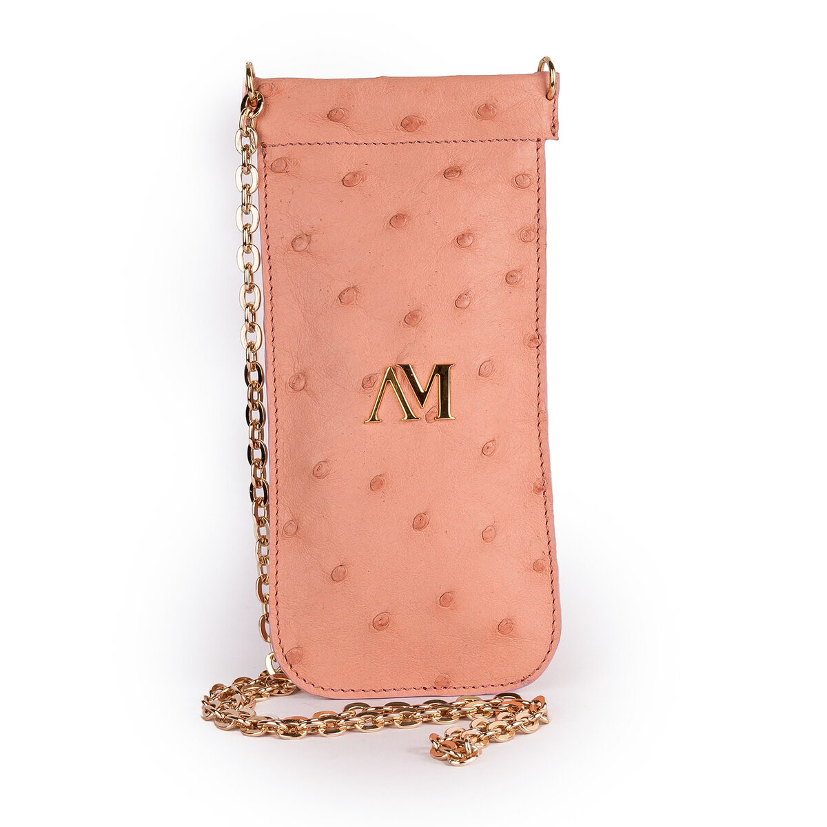 Struzzo rosa, catena oro 88 cm, interno moirè nero